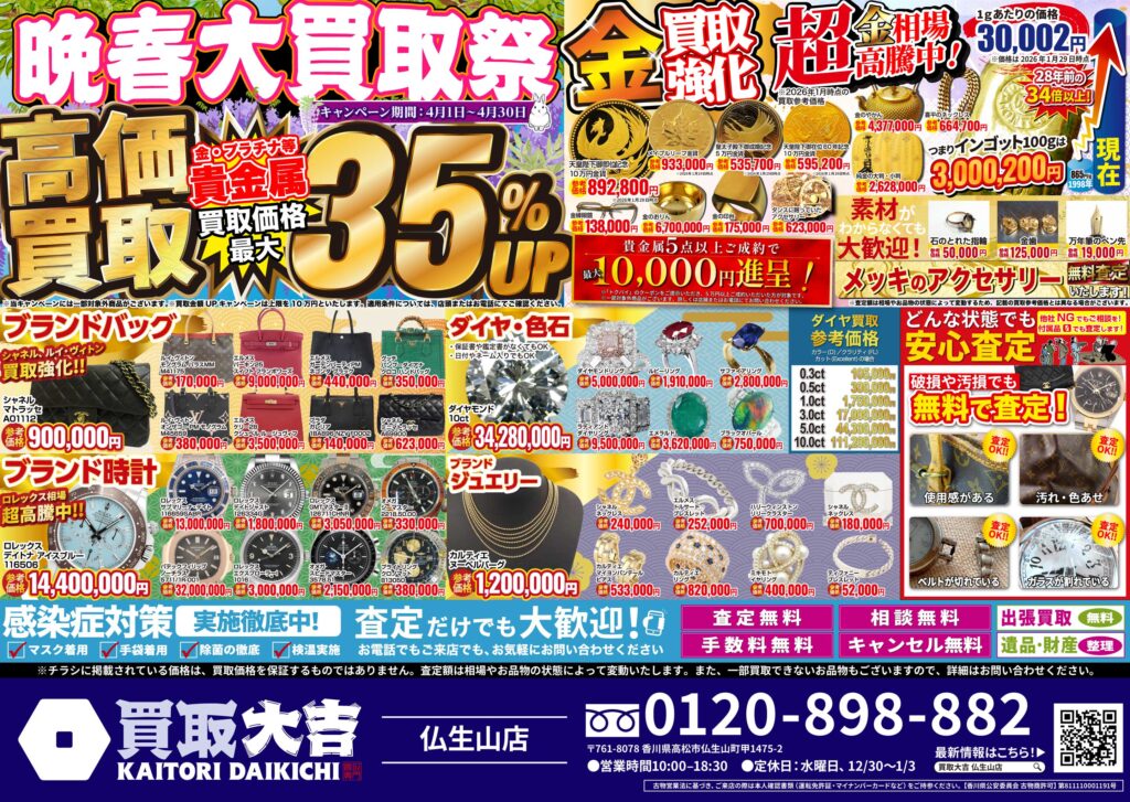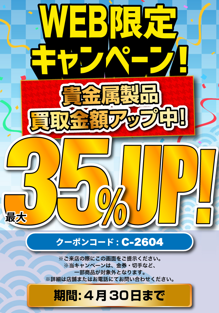 キャンペーン実施店舗 よくあるご質問 買取価格は主にどんな要素から決まるのでしょうか? お品物の状態や付属品の有無、最新相場、流通量などによって買取価格を算出します。 どんなものを買い取ってもらえますか? 金・貴金属・ブランド品はもちろん、お値段がつくか迷われているものも是非お持ちください。 傷や汚れのあるアイテムでも買取可能ですか? 大歓迎です。未使用品などのお持ち込みは少なく、傷や汚れのあるアイテムをお持ちいただく方が半数以上です。状態の悪いお品物やカビなどがあってもお買取可能なケースもございます。 どんな情報があればすぐに査定額を教えてもらえますか? お品物の名前や種類、状態、またはブランド名、型番などの情報があると、概ねの査定額をお伝えできるかと思います。 店舗での査定時間はどのくらいですか? お品物の種類や個数にもよりますが、約5分から30分ほどの査定時間となるケースが多いです。事前にある程度の査定時間をお伝えいたしますので、ご安心ください。